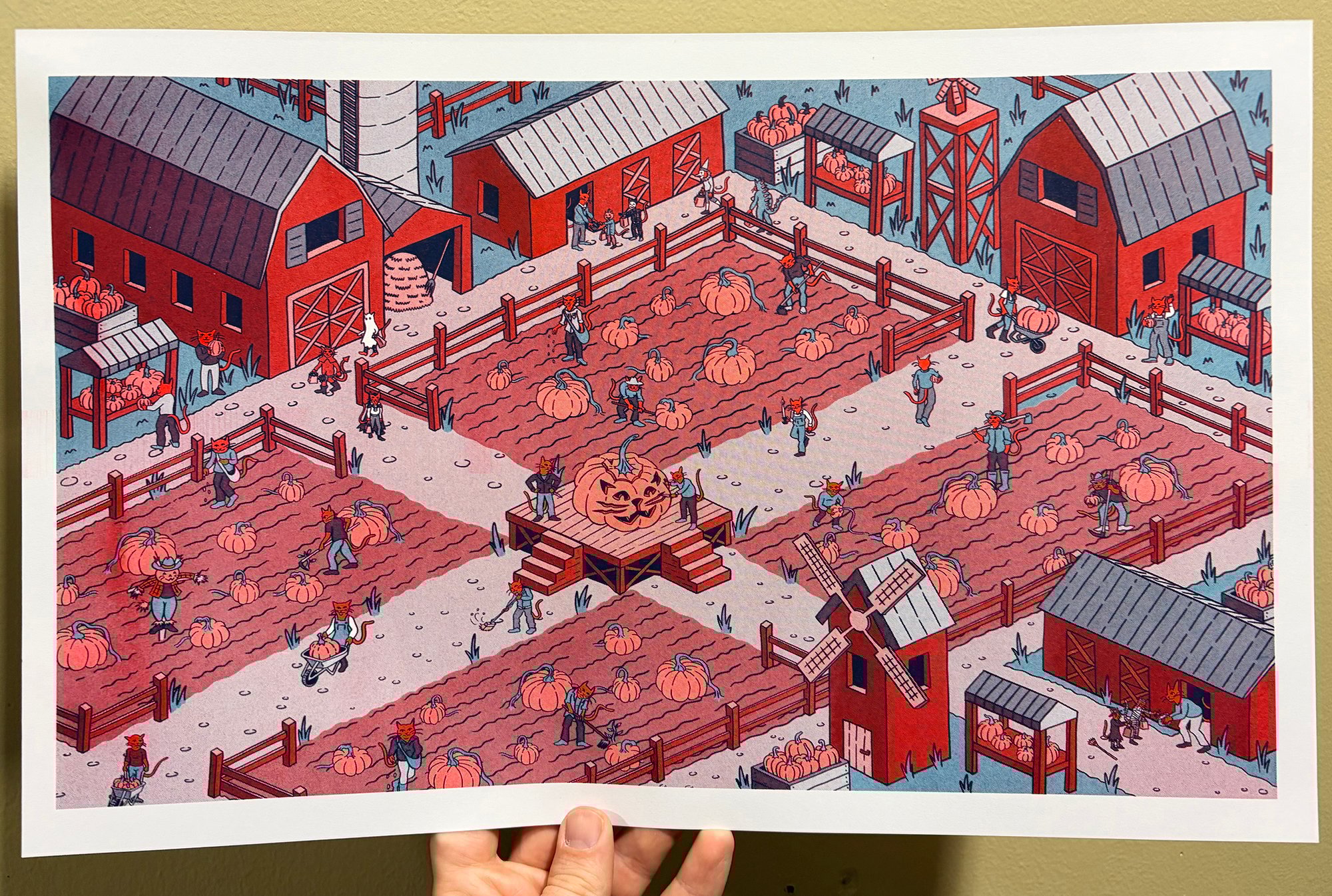 Purrfect Patch, 11” x 17”, risograph, 2025, by Doug Eberhardt